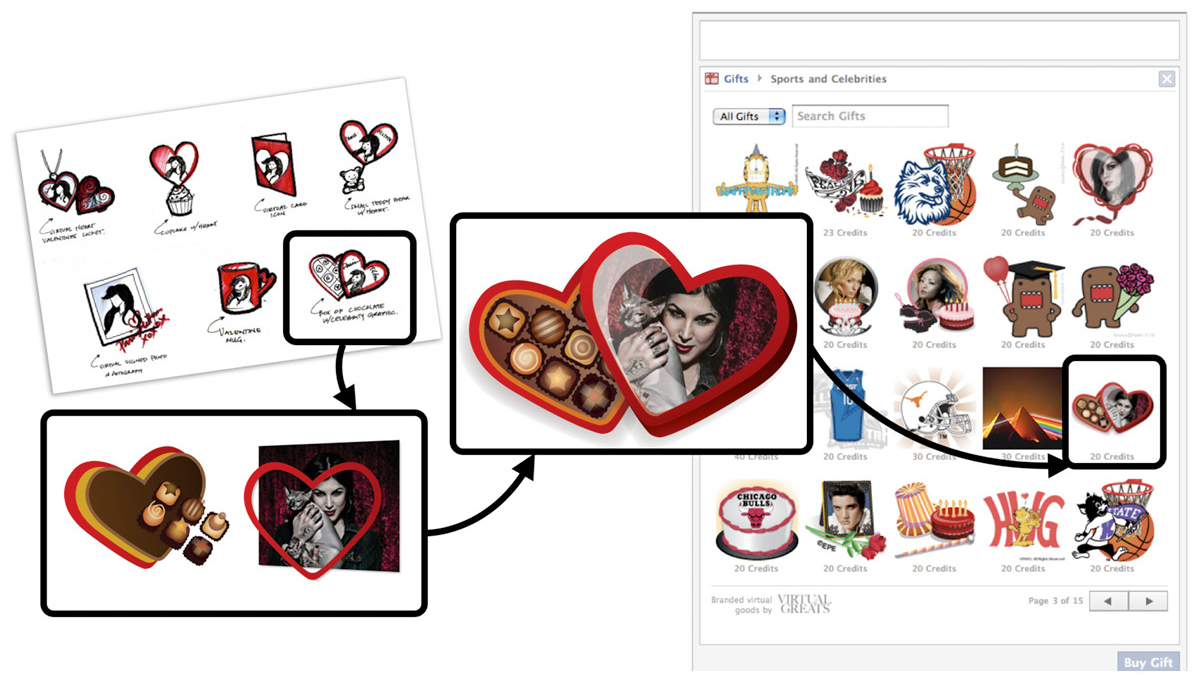 Virtual Greats licensed and produced celebrity branded virtual gifts sold on virtual worlds, and on Facebook (while feature was active 2007-2010).